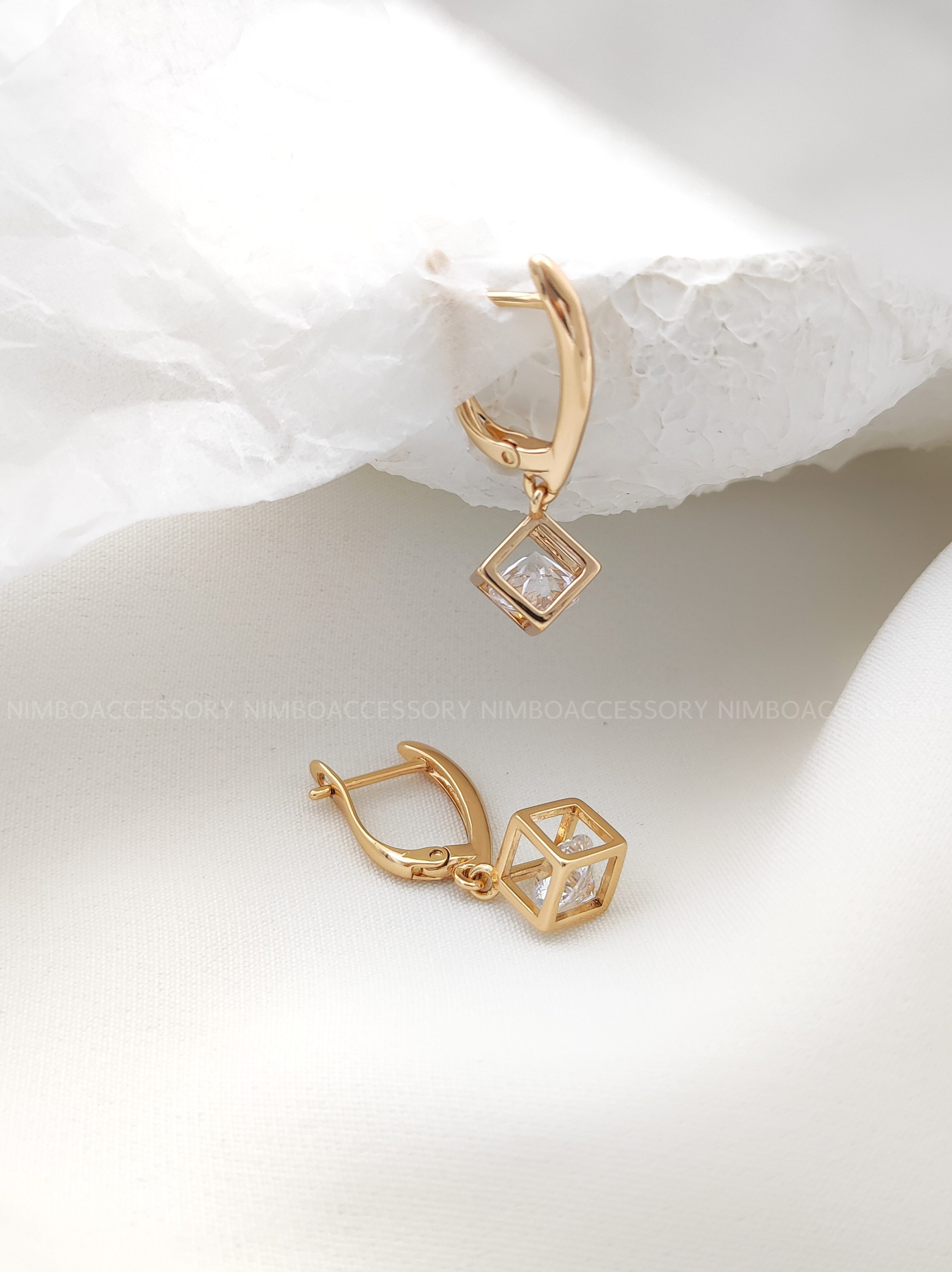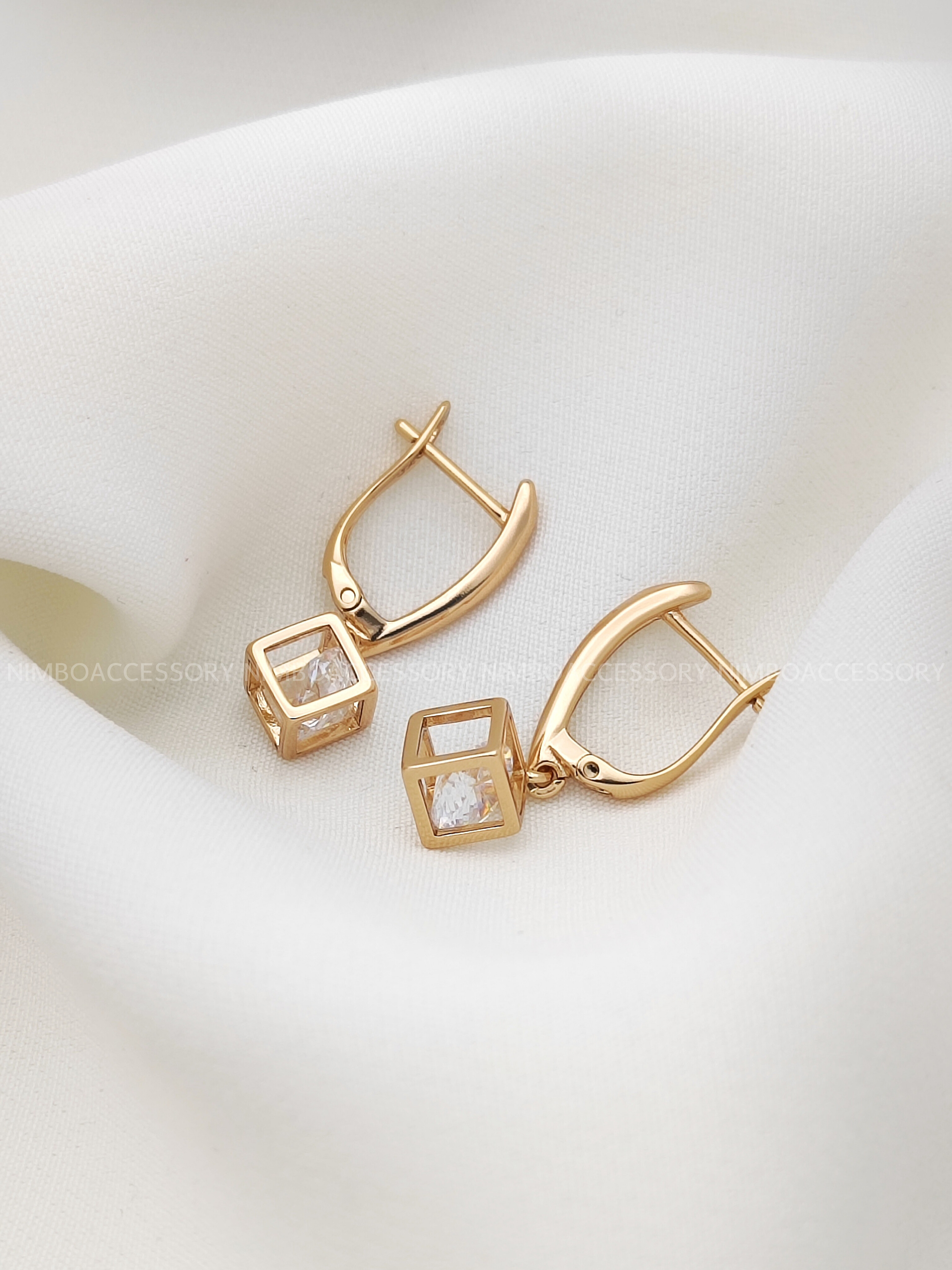 گوشواره مکعبی طرح طلا